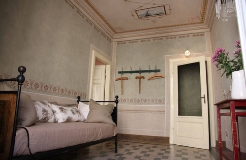 Just a few steps from the walls, the holiday home "The Torsello" is the perfect place to discover the city and feel at ease in a typical house in Lucca. The house is independent, on two floors, with 2 bedrooms, 1 living room with sofa bed, 1 bathroom small but functional and cozy, courtyard, sleeps 5. It is overlooking Via del Fosso, one of the most emblematic streets of the city inside the city wall. Expertly renovated maintaining the original finishes: the stained concrete floors, ceilings and walls with beautiful nineteenth century paintings and Art Nouveau. It breathes a unique atmosphere that takes the visitor to the ancient charm of the quaint cottage in Lucca, without neglecting the comforts of modern life. Furnished with typical Tuscan furniture that give authenticity and charm of the house.