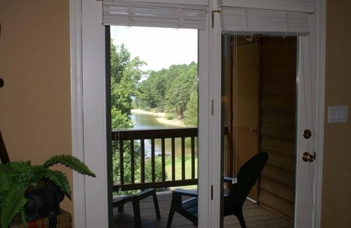 Large 2 bedroom, 2 bath 1450 sq ft condo with partial lake view and access to water’s edge within 200 feet of condo. Great bank fishing and accessible by boat. Large wrap-around covered deck with rocking chairs and swing overlooks the lake cove below.