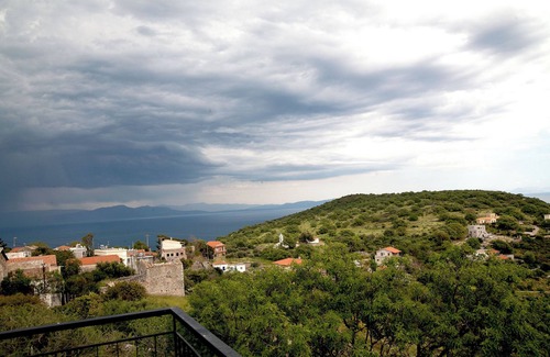 Home is located in a quiet little village perched above the sea and provides spectacular views of coast and mountains. Home offers panorama and grandstand views of the birds and wildlife (and a place to bond with the local cats). All around there are quiet beaches.