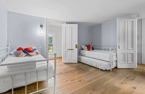 The second story at Strawberry Castle, where the original character of the home is lovingly preserved, boasts three interconnected bedrooms and three bathrooms, along with a charming play area for the little ones. Each bedroom is a haven of comfort, adorned with tasteful décor and cozy furnishings, promising restful nights and sweet dreams. The bathrooms, meticulously designed, offer a touch of luxury with a blend of modern fixtures and timeless charm. Meanwhile, the small play area provides a space for the children to let their imagination soar, ensuring that every family member finds joy within the enchanting walls of Strawberry Castle.