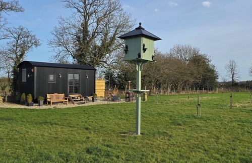 Bertie's Shepherds Hut is a beautifully crafted, newly built Shepherds Hut located in a large south facing private paddock at the back of our house in the Cotswolds, on the edge of the Cotswold Water Park. There are views across to fields, often with deer roaming and grazing in the orchard, and a pond at the bottom of the field, full of wildlife and interest.