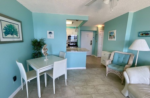 This welcoming condo features an updated kitchen that makes meals easy and enjoyable. The 2 bathrooms both include nice walk-in glass-encased tile showers that provide a refreshing retreat after your beach days.