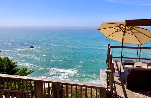 This house is COMPLETELY private. Although it is located within a small coastal neighborhood, the cliffs and trees on the property are such that no nearby buildings or roads are visible from any window or deck anywhere in the house. The highway is far enough that no traffic sounds of any kind can be heard… Just the sound of the crashing waves…