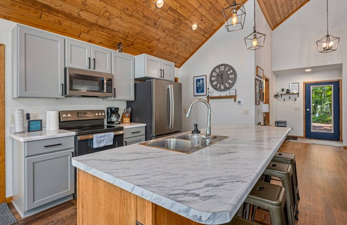 Welcome to Five Pines, a beautiful vacation home located on peaceful 270 acre Pickerel Lake, northwest Eagle River, in Vilas County. This year round, NEW custom home is a one of a kind vacation rental, combining an old school up North feel with a modern design. Five Pines boasts four bedrooms, including a bunk room for the kids and private deck off of the master bedroom, with three full bathrooms. The spacious open concept living/kitchen area highlights magnificent western facing views of Pickerel Lake, known for its fishing and access to some of the best snowmobile/ATV trails in the Eagle River area. But it doesn’t end there, continue to enjoy this wondrous view and natural surroundings on a comfortable screened porch or dine outside on a large deck. For those rainy days or quiet nights in, the house also includes an exquisite view of the lake downstairs with floor to ceiling windows in a cozy living and entertainment area, offering a large smart tv and Starlink Wi-Fi. The outdoor space is where the fun really begins, with a fire pit for making smores, charcoal grill, fifty foot dock, sandy waterfront for swimming and fishing boat to enjoy the majestic views and sunsets. Enjoy the magic of the North Woods, making lasting memories with family and friends at Five Pines and all that it has to offer.
