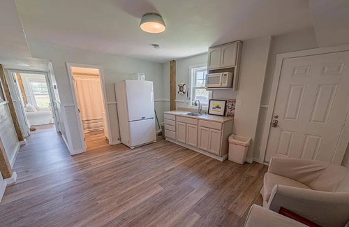 The second unit on the first floor has two bedrooms and one full bath. One room with a king bed and a second room with a queen bed and a twin size bunk bed plus a trundle.