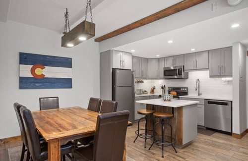 The Rockies 2103A by Mountain Vacation Lodging is a beautifully renovated and updated condo. From the floors to the ceiling and everything in between, this condo has great quality. It is a ground floor unit with a covered patio and an enjoyable flat yard space. Onsite at this development you'll find lots of open space, a large heated pool and 2 hot tubs, a clubhouse with lounge, ping pong, BBQ grills and picnic areas. It also has a very convenient location within walking distance of Gondola Square, restaurants, shops, and activities. You can walk to the slopes or ride the free city bus.