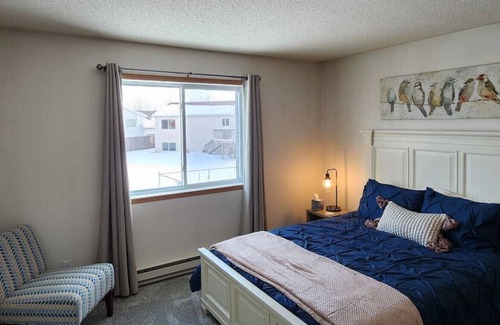 This 2 bed 1 bath home is located in a very quiet mature neighborhood. It is a split level design. Updated house feels new. There are plenty of windows to bring in natural lighting. There is an attached garage . This home has a 2 level back yard deck overlooking a wonderful yard. It is located on the border of Moorhead/Fargo not far from freeway. Work onsite with a work station and printer. Brand new furnishings. Well stocked kitchen. Exterior security cameras for your safety. Washer and dryer in the laundry room on site.