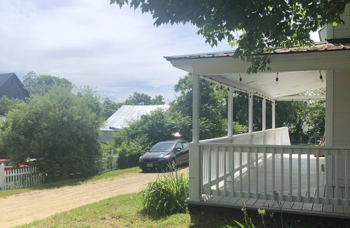 Weirs Beach renovated quaint 1930's cottage. Next door to our VRBO property 1685768 that sleeps 11, so large groups can book both homes at the same time if available. Listen to live music from the outside venue right next door on your own wrap-around covered porch! Cute house has 3 bedrooms (2 on second floor (note: stairs are steep), and one bedroom on first); sleeps 7 in 2 queen beds, 3 twins (one fold-up), 2 full baths (first floor with tub, upstairs has shower), laundry in first floor bathroom. Fully appointed kitchen with all new appliances, eating bar with 2 stools and 2 extra stools. Living room has electric fireplace, TV, couch, 2 slipper chairs, Dining area seats up to 7. Outdoor grill, picnic table, chairs and firepit on property. View seasonal fireworks from the back yard! Large paved driveway can fit up to 4 cars/boat. Literally around the corner from Weirs Beach activities. Less than 5-min walk to the Scenic Train, Mt Washington Cruises, restaurants, music venues, the pier, boat rentals, docks, arcades. Walk along the boardwalk to the public beach (0.5 mi). Property includes pool noodles, beach towels, wagon, and cooler for your outing. Other near-by activities include the Drive-In theatre (0.7 mi), Fun spot (1.3 mi), Kellerhaus Ice cream and candy (0.5 mi), Bank of NH Pavilion concerts (3.8 mi), Gunstock Mtn hiking and skiing (8.9 mi).