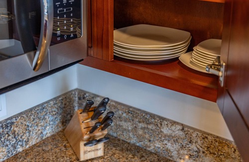 - Fully equipped with a toaster, coffee maker, rice cooker, blender, kettle, pots, pans, silverware, cookware, and dishes.