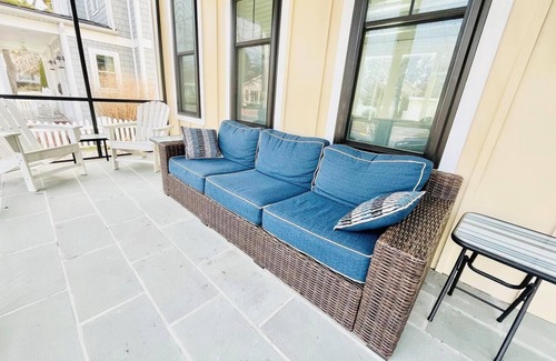 You will not want to miss staying at this upscale beachy oasis with a private pool! High ceilings and pastel colors lend a breezy feel to this chic modern L-shaped designed house, providing many areas for guests to enjoy. Oversized sliding glass doors to the garden bring the outside in. You will love the privacy of the fenced in yard while sipping cocktails by the pool or using the gas grill to prepare your beach vacation dinners. Lounge on the huge family room sectional sofa while overlooking your own private pool. The pool has the option of being heated for your enjoyment, so please inquire further if interested. The spacious screened in front porch is a rarity in Rehoboth. Watch the world go by on one of the prettiest blocks in town all while relaxing under the ceiling fans on the comfy porch furniture. Inside you will find an open spacious layout with all the comforts of home. Gather and cook in the well-appointed kitchen. Kick back in the open living area or unwind in one of five plush bedroom suites, each with its own big screen TV and private bathroom. Pack the cooler provided to the beach and afterwards enjoy a refreshing outside shower. Walking distance to the wonderful restaurants and shops of downtown Rehoboth. This coastal style gem is ideal for making lasting memories with family, friends, and loved ones!