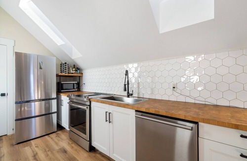 Escape to a serene retreat on Vancouver Lake, where this charming 2-bedroom ADU offers a perfect blend of tranquility and adventure. Nestled above the garage with a private entrance, this welcoming space features two queen beds, a cozy living area, a fully equipped kitchen, and modern amenities like WiFi, AC, a washing machine, and a large tiled shower with a hair dryer.