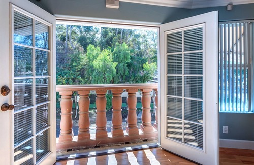 On the 2nd and 3rd floor landings are French doors that open against balcony pillars to provide sunlight, fresh air and partial views. (These are 'Juliet' balconies; not step out balconies).