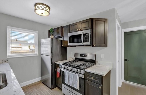 This charming 2 bedroom suite in the Lakewood OH is a fantastic find! This newly remodeled living space is styled with modern furniture and high end finishes. Suite comes fully stocked with bedding, comfortable mattresses, cooking utensils coffee sugar and basic cooking items. Each bedroom has own Smart TV (3 TVs in total).Suite is located next to iconic Winchester Music Tavern in Lakewood within walking distance to tons of small Bars, pubs and restaurants.Just a short commute to other main attractions of Greater Cleveland Area (Cleveland Clinic, Rock and Roll Hall of Fame, Huntington Convention Center and others).