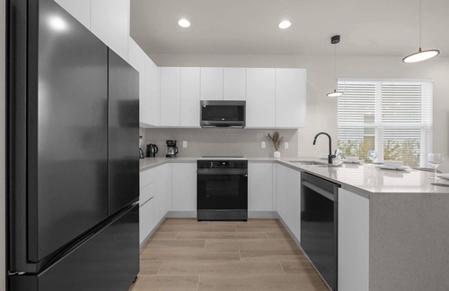 Located in Clermont, Florida, in the Tranquility Townhomes community, this modern townhouse features 4 bedrooms and 3 full bathrooms. Perfect for families, it's large enough to host up to 8 guests at at time. You'll love the group-friendly open-concept living space, and the fully equipped chef's kitchen. There's a large family dining table to enjoy your meals around, and also a covered poolside sitting area that's perfect for a pre-dinner drink. The back patio sundeck has recliners for you to soak up that Florida sunshine, and there's a private swimming pool ready for when you want to cool off.