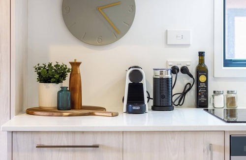 The kitchen has complimentary Nespresso coffee, plunger coffee, instant coffee, black tea, peppermint tea, drinking chocolate, sweat treats, sugar sachets, milk, oil, pepper and salt.