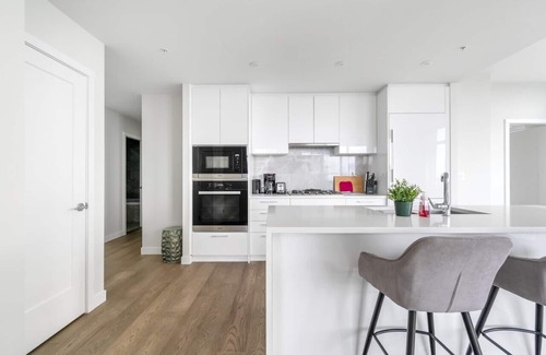 Welcome to your stylish urban retreat on Berton Avenue! Situated on the high floor, this modern apartment offers breathtaking views and all the comforts of home for your stay in Vancouver.