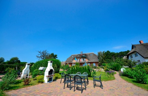 The apartment "Sonnenkliff" on the ground floor in the new thatched and verklinkerten semi-detached house in Groß Zicker, Boddenstr. 8A. The apartment has its own separate entrance. The house was rebuilt in 2008.