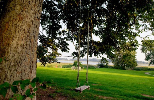Apartment no. VIII of Gut Grubnow is located in the extremely cozy attic of the manor house. The apartment for up to four people and in a size of 78 m² is furnished with attention to detail and consists of three rooms: a large living room with open kitchen (Siemens appliances) and a beautiful view of the garden and the water, a bedroom with two single beds and a bedroom with a double bed (open room design, without door) and a bathroom with separate bathtub and shower.
