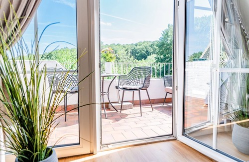 The beautiful balcony with a great view of the Baltic Sea invites you to dream and relax.