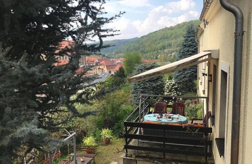 Located in the heart of the Saxon Switzerland and directly on the Malerweg, our house offers an ideal starting point for hikes and bike tours in the Elbe Sandstone Mountains with its bizarre, multi-faceted rock landscape. An extremely interesting cultural offer is due to the nearby state capital Dresden and a wealth of events or Guaranteed facilities in the vicinity. Our apartment is very quiet and at the same time central, as bus, train and boat can be reached on foot in just a few minutes. The house with sun terrace, fortress and Elbblick you reach over a short ascending footpath, at the beginning of which you can hold by car for loading and unloading. Guests with mobility problems should therefore contact us in advance.