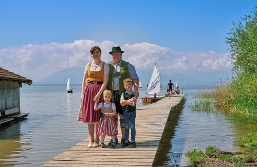 Vacation apartment Hochfelln, 1-6pers., 2 sep. 1st bedroom, 1st floor, east-facing balcony with lake & distant view | Apartment in Chieming