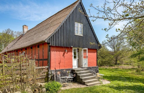 Welcome to this older vacation home overlooking fields, forest and garden, which is functional but cozy and well furnished. Inside the house you will find a living room with kitchen and dining area, where you will find a sofa bed. The bedroom is furnished with a double bed and also has a nice view of fields, forest and garden. You also have an older bathroom with shower and toilet at your disposal.