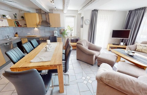 3 room apartment up to 8 people 100m ², combined living room with cozy