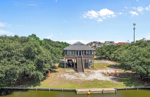 Come relax and watch the WILD Horses off the pavement in Carova Beach. Enjoy the sunset from this this newly built canal front vacation beach cottage located just minutes from 4WD beach fun. Facing the West and the canal you will enjoy sitting on the porch and watching the fish jump! Plus otters, turtles and ospreys are regular visitors. Swim, Fish, Crab, Paddle Board, and Kayak from the canal dock!