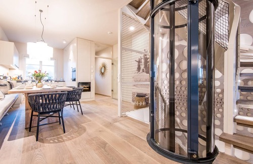 The thoughtful interior design allows you to live in harmony with nature on the partially loft-like levels. Specially selected textiles make it possible to make the TV sets invisible at your discretion. Tastefully placed built-in wardrobes and interior details extend throughout the entire house, promising our guests an extremely pleasant stay.