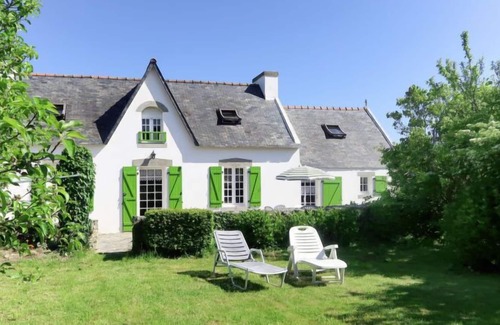 Single-family house "Ty Didrouz". 800 m from the centre of Goulien, 9 km from the centre of Audierne, 1.3 km from the sea, 10 km from the beach. Private: property 1'000 m2, well-kept garden with lawn and wildlife garden, parking on the premises. Shop 800 m, supermarket 9 km, sandy beach "Plage de Pors-Théolen" 6 km. Sports harbour 9 km, surf school 9 km, walking paths from the house 1.3 km. Nearby attractions: Pointe du Van 10 km, Pointe du Raz 11 km.