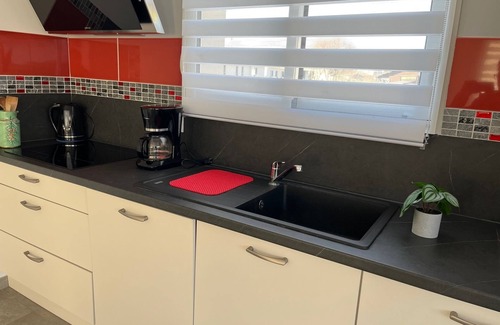 Prepare a home-cooked meal in the kitchen, complete with an oven, a stovetop, and a refrigerator, as well as a coffee maker, an electric kettle, and a microwave. And you won't have to pack extra clothes, because you'll also have a washing machine. Other amenities include a BBQ grill, bed sheets, an ironing board, and heating.