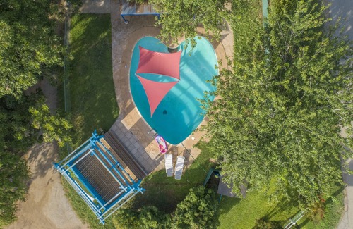 Valentinians enjoy a heart-shaped pool, swimming in the lake, boat lifts, water-toy rentals and an on-site essentials store. Plenty of chairs at the shoreline give guests a place to fish and hang out. Mature pecan trees provide a shady canopy for hammock naps. Guests make s’mores in the fire pit and borrow lawn games to play on lakeside terraces.