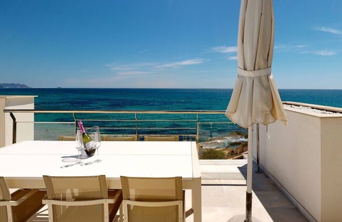 Penthouse Varadero at Dormio Resort Costa Blanca offers a high level of luxury and comfort. The accommodation can accommodate up to 6 people, providing guests with a usable area of approximately 55m2. The balcony with patio furniture means that you can enjoy spending the whole day outside Stairs on the balcony give access to a panoramic roof patio with a pergola and shade sails. There are breathtaking frontal or side sea views from both the balcony and the roof patio.