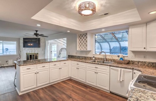 With a formal dining room, spacious kitchen, and full bath on the main floor, this home is perfect for creating delicious meals or enjoying a relaxing evening in. Whether you're lounging by the outdoor pool, soaking in the clear waters, or exploring the vibrant city, this villa offers an unforgettable stay.