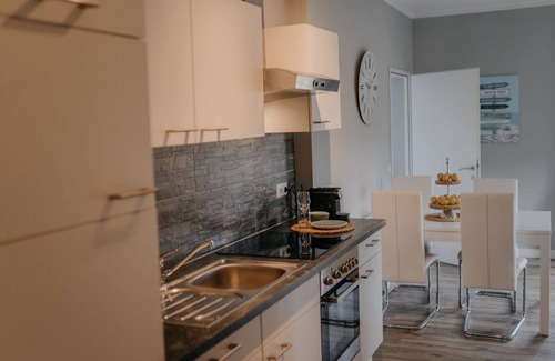 Das Apartment verfügt über 2 Schlafzimmern (eines mit Ausziehcouch), einem Badezimmer mit ebenerdiger Dusche und separatem WC, einem Wohnraum mit gemütlicher Couch, eine Küchenzeile, der Essbereich und einem Balkon