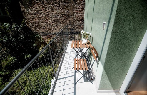 Recently renovated to combine modern comforts with the charm of a historic Mid-European building, the apartment is situated on the 1st floor and comfortably accommodates up to four guests. Each of the two bedrooms features its own en-suite bathroom, providing privacy and convenience. The apartment also boasts a large and inviting living room, a fully equipped kitchen with a dining area, and a laundry room for added comfort and practicality during your stay.