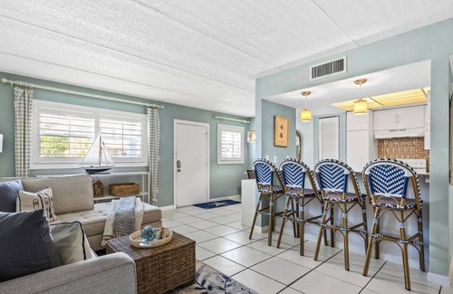 Remarkable first floor condo in the desirable Bahia Vista Community. This well appointed condo has a spacious entry and open concept living area. The kitchen offers open sight lines, granite counters, fresh white cabinetry, full appliance suite and a bar area roomy enough for four bar stools. There is a dedicated dining space which is currently being used as an additional sleeping area. And a spacious living room which is the perfect spot to relax on the luxury couch. The huge primary suite offers large bedroom area, walk in closet and attached newly renovated full bath. The entire unit has been updated and freshly painted with neutral coastal colors. The Bahia Vista Community has been consistently voted the best pool and private beech access on the island. The condo is directly across the street from miles of beautiful Gulf of Mexico Beaches. A stones throw to The Crows Nest and Jetty. And a short walk or drive to all the boutique shops and restaurants the Village if Venice has to offer. This unti also can provide you with investment potential. Similar units rent monthly for $3,800 off season and $5,000 in season