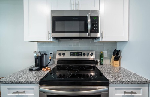 This Mansion, Vibrant Chic Apartment is a 2 bedroom, 1 bath multi-family unit completely renovated in 2020, just minutes from NoDa. The home includes wood floors throughout, new custom cabinets, appliances, & more. Furnished by West Elm™, the main bedroom has a queen bed with a spacious hall bath. The guest bedroom features a queen bed as well. Bringing a furry friend, our private dog park on-site is perfect for them to run around.