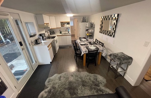 Private Charming Victoria main level Suite-like, newly renovated beautiful large1-bdrm queen bed & Den with a single bed. Shared laundry room , but with separate outside entrance. Enjoy the spacious living area with a large screen TV, with a sofa queen bed option. There is also a single bed couch option by the kitchen if needed, are all comfy with soft sheets, lots of plush pillows, & darkout blinds for restful sleep. This Cozy main-level suite, is complete with new beautiful grey laminate floors and a welcoming fresh coat of paint throughout.The kitchen is stocked with lots of kitchen appliances, & a small dishwasher. The private fenced backyard is perfect for your pets to run around with a new deck with Gazebo for entertaining.