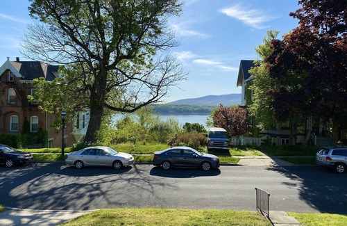 ** “SUPERHOST” & GREAT REVIEWS ON ANOTHER VACATION RENTAL WEBSITE! Enjoy the Hudson River views from the porch, the living room and the dining room. Andrew Jackson Downing, a Newburgh native, was a famous landscape architect in the 18th century behind the planning of Central Park. 60-minute drive from NYC. Or the Metro North from Grand Central to Beacon and Uber to the house (about 10 minutes).