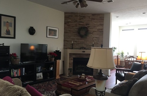 If entertaining is what you like to do, the dining room sits up to 10 people, and has gorgeous views of the mountains. We love sitting in the backyard patio watching the birds, bunnies and assorted little wildlife dramas take place, and watching sunsets color the mountains during dinner. Many amenities, including washer and dryer, grills, fully stocked kitchen, high end bed linens, three flatscreen TV's, comfortable furnishings, and a quiet, graceful decor make for a great stay here in Albuquerque.