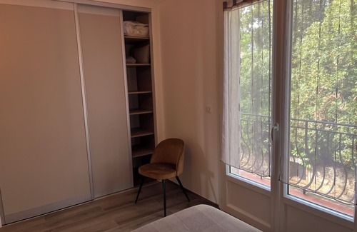 Rent located in a private and secure property, large sunny terrace facing south on the 1st floor of a villa with magnificent views of the bay of Juan les Pins, overlooking a private lawn and a forest of oaks, pines and olive trees, residential area very quiet, bus line 400 meters, motorway 3 kms, supermarkets, bakery and other shops 1.5 km from the house