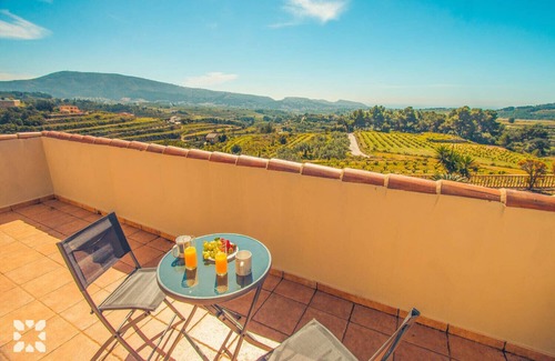 LAYOUT: The AZALEA villa, a combination of rustic and Mediterranean style, is spread over two floors. We access the property through an entrance that gives access to a space shared by the living room and dining room. A comfortable sofa with capacity for all guests, as well as a small coffee table and a television make up this space. Right behind is the dining table with chairs for all guests. To our right, the rustic and fully equipped kitchen with everything you need to prepare meals. On this floor there are two bedrooms: one with two single beds and one with a double bed and an en-suite bathroom with a shower. On this same floor we find a second bathroom with a shower. On the upper floor are the other two bedrooms: one with two single beds and the other with a double bed. At our disposal there is a bathroom with shower. From the double room, we have access to the terrace with a table and chairs to read and admire the magnificent and unobstructed views.