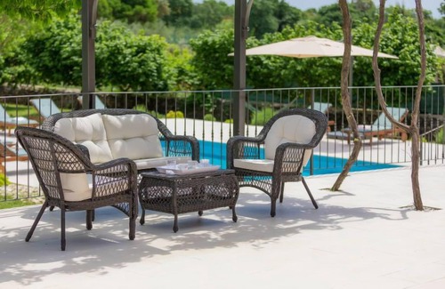 6-room house 200 m2 on 2 levels. Tasteful furnishings: living/dining room 20 m2 with 1 double sofabed (160 cm, length 200 cm), kitchen corner and satellite TV (flat screen), air conditioning. Exit to the terrace. 1 room with 1 double bed (2 x 90 cm, length 200 cm), shower/bidet/WC and satellite TV (flat screen), air conditioning. Living/dining room 35 m2 with satellite TV (flat screen), air conditioning. Exit to the terrace. 1 room with 1 double bed (2 x 90 cm, length 200 cm), bath/bidet/WC and satellite TV (flat screen), air conditioning. Exit to the terrace. 1 room with 2 beds (90 cm, length 200 cm), shower/bidet/WC and satellite TV (flat screen), air conditioning. Open kitchen (oven, dishwasher, 4 ceramic glass hob hotplates, microwave, freezer, electric coffee machine). Sep. WC. No heating option. Upper floor: open gallery with satellite TV (flat screen), air conditioning. 1 room with 1 double bed (2 x 90 cm, length 200 cm), shower/bidet/WC and satellite TV (flat screen), air conditioning. Terrace 30 m2, terrace 15 m2. Terrace furniture, deck chairs. View of the swimming pool. Facilities: safe, iron, baby cot, hair dryer. Internet (WiFi, free). Parking (roofed, 3 cars). Terrace 6 m2, roofed. One house with living/dining area, open kitchen, 1 bedroom on the ground floor. The other house with living/dining area, open kitchen, 2 bedrooms on the ground floor and open gallery, 1 bedroom on the first floor.