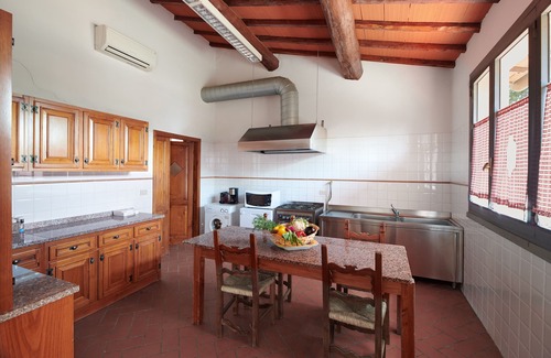 The villa, whose entrance is decorated with two 17th-century statues representing two lions, is divided into six apartments of different size, each one with its kitchen, full bathrooms with shower and all furnished in the typical Tuscan style and it's rented all together. All the apartments are provided with satellite TV and Internet connection and one of them is accessible to disabled people.