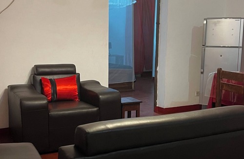 Large ground floor apartment with one bedrooms, living room, kitchen, and full bathroom. Very clean, simple, comfortable and in a private gated location in the bustling city of Sambava. Cleaning services can be provided (at extra cost).