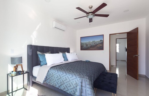 Visual appeal and striking style runs through every inch of this fashionable home, located in Cancun’s buzzing Huayacan Avenue. Sculpted seatings in ptivate pool plunge pool, with art and cutting-edge furnishings adding the extra touch to the artful dining and relaxation areas. The home is just moments from a range of fine restaurants, bars and sunset promenade. Just 15 min with the car to famous carribean beaches in hotel zone.