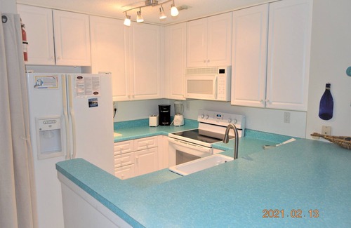 When you are not enjoying the fresh seafood at SPLASH by the SEA (just downstairs) or any of the various Topsail Island restaurants, you have 2-kitchen options, choose full kitchen or kitchenette with 2-coffee makers and complete cooking equipment to whip up a meal before heading out for your ROMP on the beach.