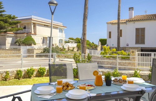 Take a break from the hustle and bustle of everyday life with Can Cel. Enjoy modern, nature-filled surroundings and al fresco dining in a minimalist contemporary villa that is fully air conditioned. With room for 8 people, it´s perfect both for couples or families, it's close to the beach and within walking distance to supermarkets and restaurants. Escape the ordinary and experience a holiday like no other with Can Cel.DistributionThis magnificent house situated only a few meters from the beach is distributed over two floors.On the main floor we have a spacious and sunny combined living room-dining room with a large modern-style open space kitchen, dining table, sofas and TV. From the dining room, there is access to the large terrace, where there is another large dining table, perfect for long evenings dining outdoors. On this floor we also have a complete bathroom with shower and a bedroom with a double bed (150x190cm).Next to the dining room, a flight of stairs lead to the upper floor of the house. There we find three double bedrooms, one with a double bed (150x190 cm) and two with two single beds (90x190 cm) in each one. One of the rooms has a complete bathroom with shower en suite. The other two upstairs bedrooms share a large complete bathroom with shower.The four bedrooms in the house have access to private balconies, some of them with magnificent views of the beach.On the upper floor we also find the laundry room, with washing machine, sink and clothesline.The whole house is modern and minimalist in style and the house is of course fully equipped with air conditioning in all rooms and in the living room.Outside areaThe house is located a few meters from one of the best beaches in the Mediterranean, Playas de Muro, with kilometers of fine sand and crystal clear waters.The house has a charming garden, with a large covered terrace with a dining table and a barbecue area, to enjoy meals outdoors or sunbathing.For your comfort, the house also has a private parking space, within the fenced property.Note 1. Final cleaning costs are included in the rental price. This circumstance does not exempt the client from his obligation to take care of the property. Nothing will be taken from the deposit as long as the use of the house is reasonable.Note 2. In those properties where it is possible to include an extra bed, and always subject to availability, the cost will be €15 per person per day.Note 3. Check-out time is 10:00. If a later check-out is possible, it is always subject to availability and will cost 90 € until 13:00 and 160 € until 16:00.Note 4. Free entry to the accommodation with our agency staff until 10 pm, €30 (10 pm–midnight) or €50 (after midnight). There is also the option of free self-check-in with a staff welcome the next day.Note 5. Electricity is not included in the price, the cost is €0.25/Kw to be paid on the day of departure.Note 6. On the Balearic Islands, all hotels/ tourist accommodations have the obligation of charging the guests over the age of 16 the Tourist Tax, which is then transferred to Local Authorities.