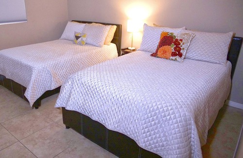 ‘Private SPA retreat’ is a single Story, 3-bedroom, three (3) bathroom property. High ceilings, and ceiling fans throughout the property, WiFi High Speed Internet, new big screen HD TV in Living Room and 3 new HD TVs in every room. Fully equipped kitchen, bar counter, separate laundry room with Washer and Dryer, new central air conditioning, automated awning cover patio throughout the resting/dinning areas. Plenty of parking space (two car garage plus private RV parking with closed front gate)